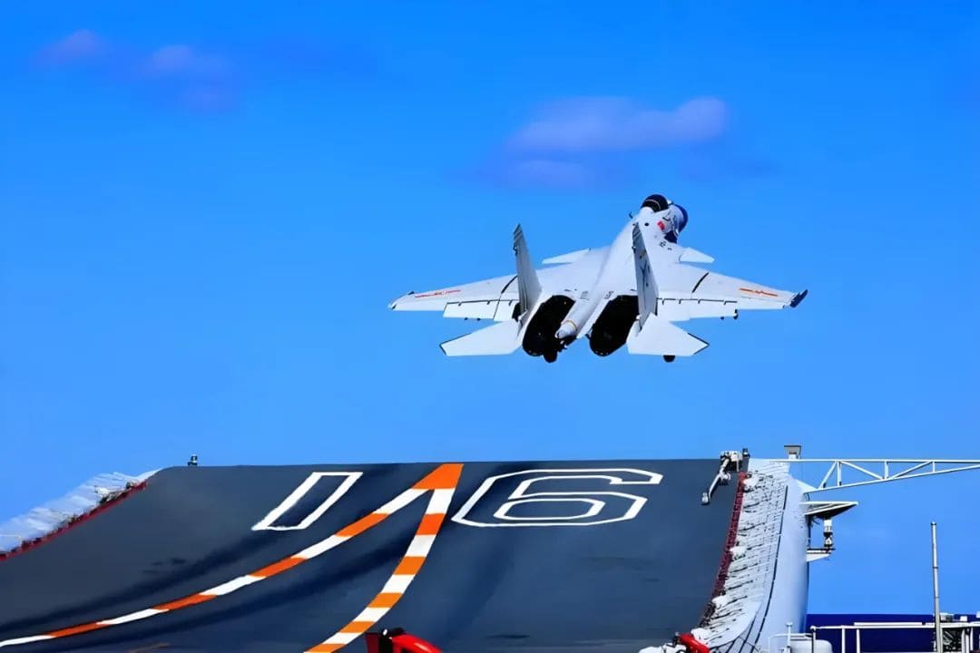 殲-15進(jìn)行滑躍起飛訓(xùn)練(來(lái)源:視覺(jué)中國(guó))