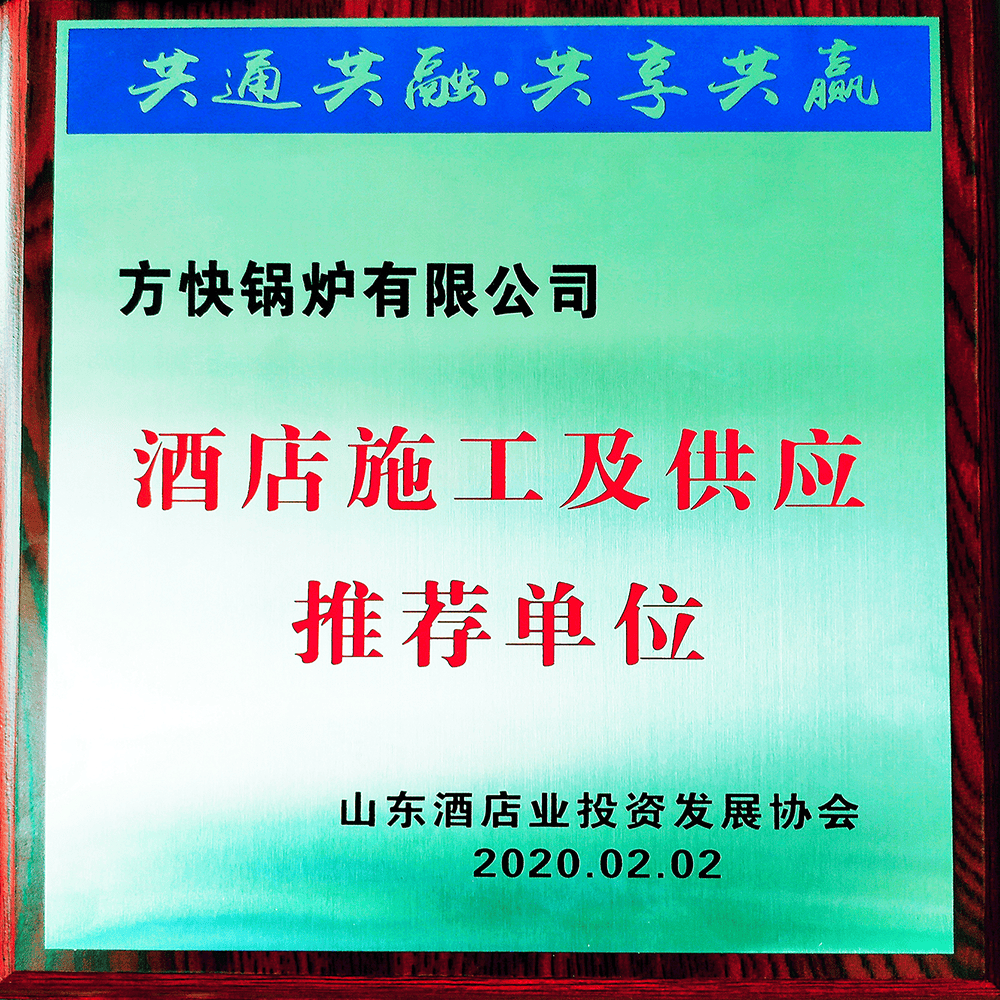商用全領(lǐng)域熱水解決方案提供者——方快,專注熱水及采暖,深耕酒店行業(yè),為國內(nèi)眾多大中型知名酒店提供了熱水系統(tǒng)項(xiàng)目的建設(shè)和改造。 2020 年 2 月份方快榮獲了山東酒店業(yè)投資發(fā)展協(xié)會(huì)頒發(fā)的“酒店施工及供應(yīng)推薦單位”榮譽(yù)稱號(hào)。