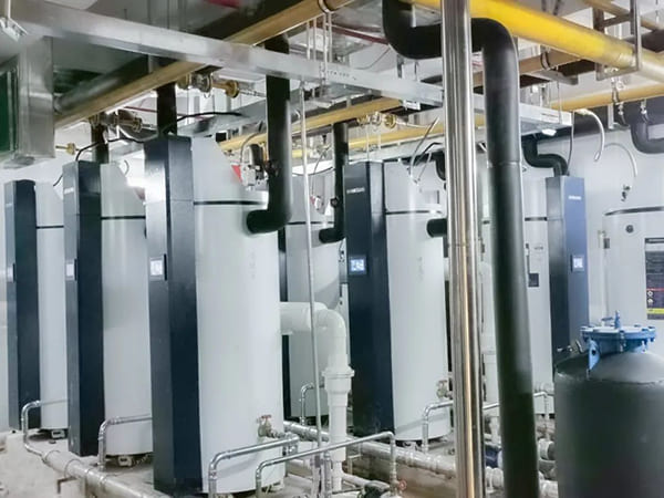 不同于常規的熱水系統,酒店客房的熱水要求24小時不間斷供應熱水,容易出現用水量高峰期,但是要保證賓客用水舒適度。這就對熱水系統的穩定性提出了較高要求,酒店方經多方對比,最終選定在熱水系統領域有深入研究的方快鍋爐V系列冷凝燃氣熱水爐。