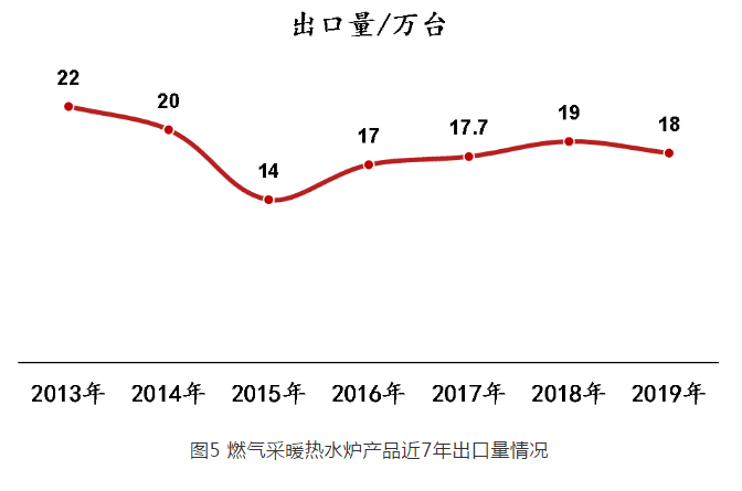 2019 年燃?xì)獠膳療崴疇t市場(chǎng)表現(xiàn)受北方“煤改氣”政策影響巨大,在消化 2018 年庫存量的同時(shí),各企業(yè)積極參與以河北、山東等地區(qū)為代表的北方“煤改氣”工程,全年總銷量保持穩(wěn)步增長(zhǎng)態(tài)勢(shì)。